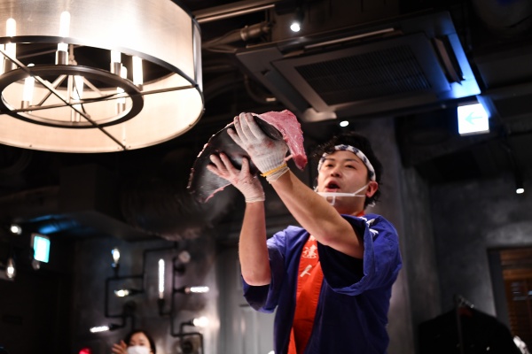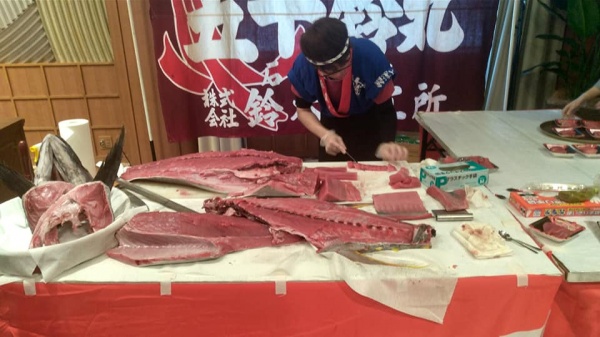 鮪達人のマグロ解体ショーは場所を選びません!!