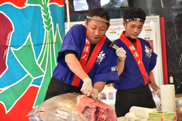 皆様にマグロ解体ショーを通じて笑顔、元気をお配りします(^^♪