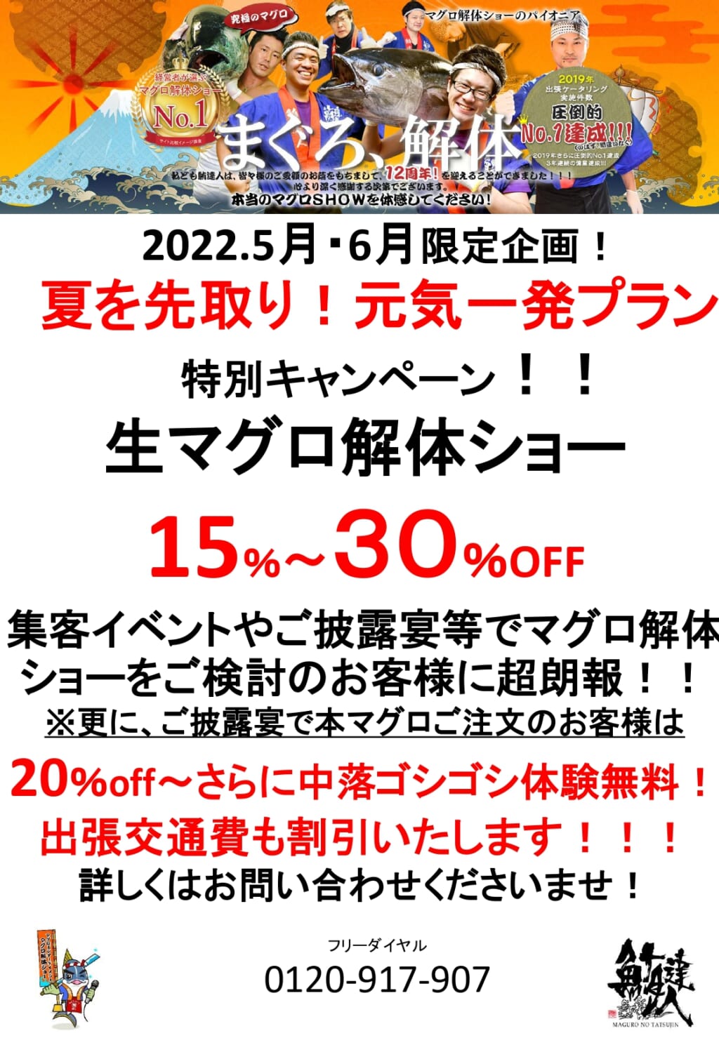 春も間も無く終わり、夏がまもなくスタートするかというこの頃、そろそろイベントの計画をスタートさせるお客様もいらっしゃると思います。安心・安全に何かインパクトがあって、楽しいイベントはできないかとお探しの方、鮪達人のマグロ解体ショーはいか... -