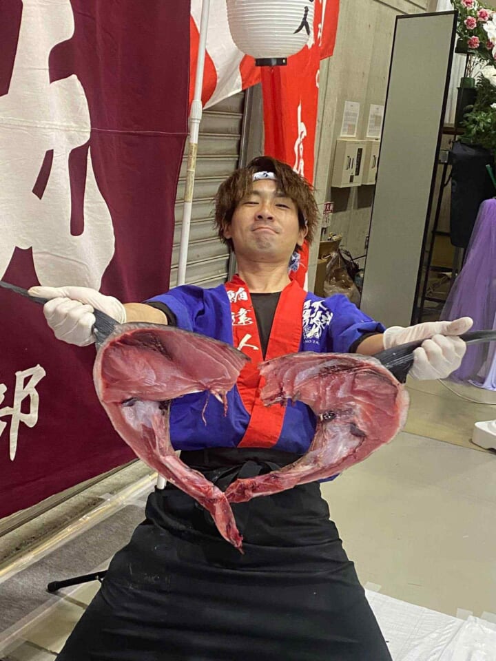 東京・大阪のみならず、全国各地へマグロ解体ショーの出張ケータリングを実施しております。法人様のパーティーやご披露宴、住宅展示場やパチンコ店の集客イベント等、多岐に渡りますが、いつも一緒にいるのはパートナーであるマグロちゃん。 今回はまぐろちゃんの生態について少し説明しながらを。マグロは餌の乏しい外洋を回遊することが多いため、餌を捕まえるために高速で泳ぐ能力を身に付けました。