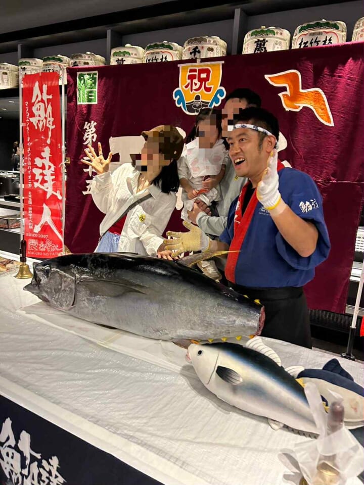 マグロと一緒に記念撮影を行ったり、