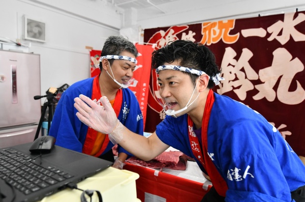 今流行のオンラインマグロ解体ショーでは入念にモニターチェックは欠かせません!準備段階で細心の注意を払い本番に備えます!
