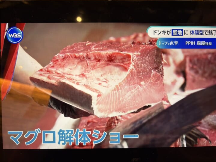 番組では、ドン・キホーテ様(PPIH)が注力する「次なる稼ぎ頭」として、私たちのマグロ解体ショーが紹介されました。