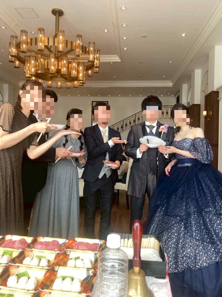 広島県広島市の結婚式場で新郎新婦からゲストの皆様へマグロをプレゼント⁉ ケーキ入刀ならぬマグロの入刀式で大盛り上がり(≧▽≦)